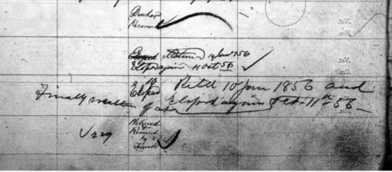 After five years in the asylum, Letitia returned to her familiar pattern and escaped again – the register often using the term ‘eloped’ rather than ‘escaped’ (which did cause a bit of initial confusion within the research team, since we’ve all apparently read too much Jane Austen). It’s unclear if she climbed the fence again or if she used a different route. She was readmitted in January 1856 before fleeing again that October.