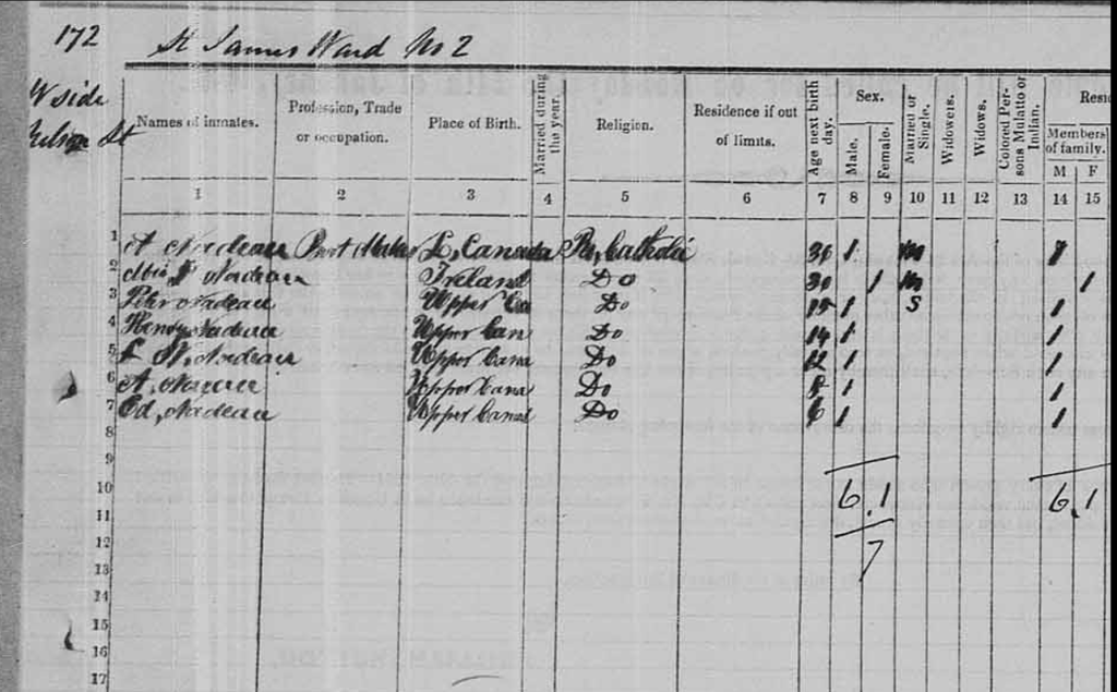 She had married Alexander Nadeau, a shoemaker from Lower Canada—he’s a shoemaker in the asylum records, but a ‘bootmaker’ according to the 1861 census—and that they settled in Niagara for a time. Eventually, they relocated to Nelson Street, only 2.5 kilometres away from the Provincial Lunatic Asylum, straight down Queen Street West. Perhaps they arrived in Toronto for Alexander’s work; or, perhaps, they came because it was closer to the asylum, the place of Frances’ many confinements.